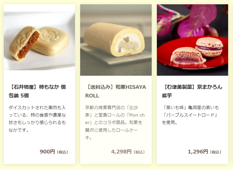 和栗を使ったロールケーキや、さつまいもを使ったジェラート、