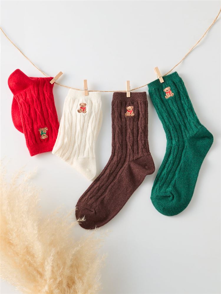 品名 カシミヤ混縄柄くまマフラー刺繍ソックス18㎝丈