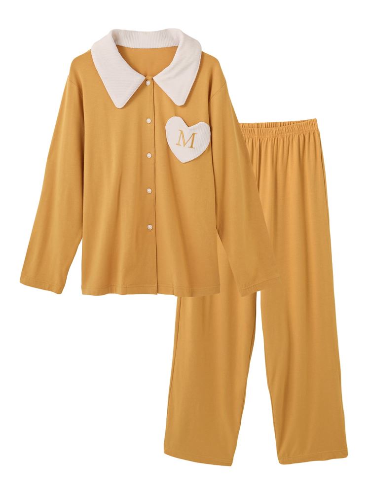 襟と胸ポケットにベロア素材をあしらった上品でガーリーな前開きパジャマ(^^)
