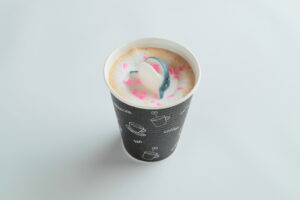 ジンベエザメのマシュマロがぷかぷか浮いているホットラテです。
