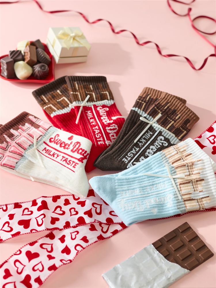 履くだけで気分はスイーツ♡板チョコ柄ソックス。