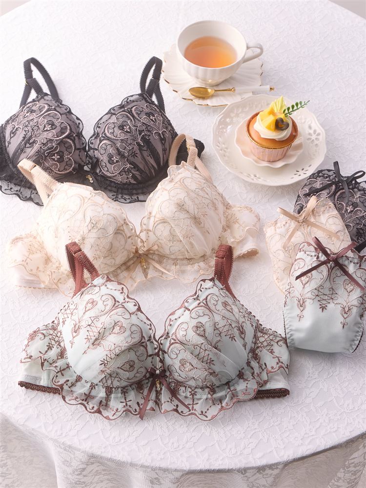 [感激のブラ・寄せる]ノワールショコラブラ&ショーツセット