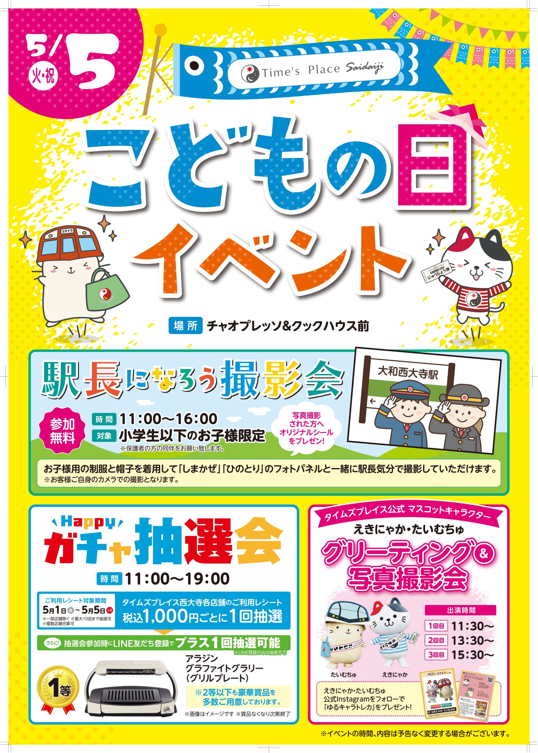 大和西大寺駅でこどもの日イベント2026開催!駅長体験やガチャ抽選会も【タイムズプレイス西大寺】