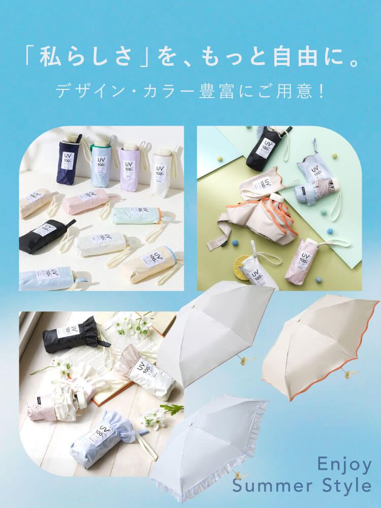 Vカット・遮光率100%!コンパクトで持ち運びしやすい折り畳み日傘。