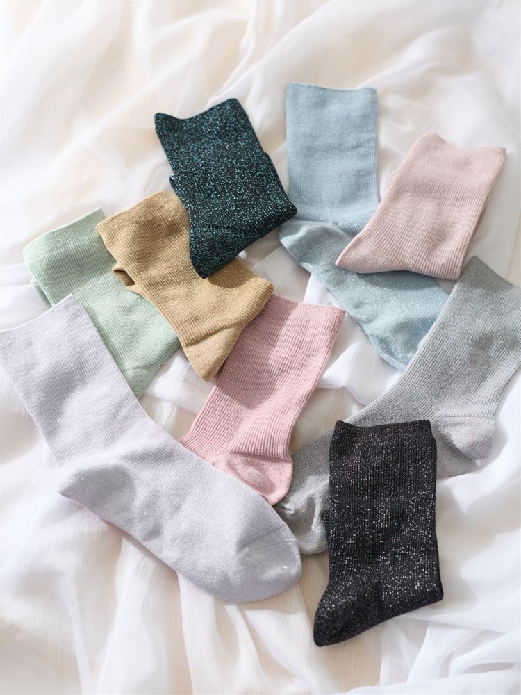 大人っぽさと可愛さをほどよく楽しめる、ラメリブソックス。
